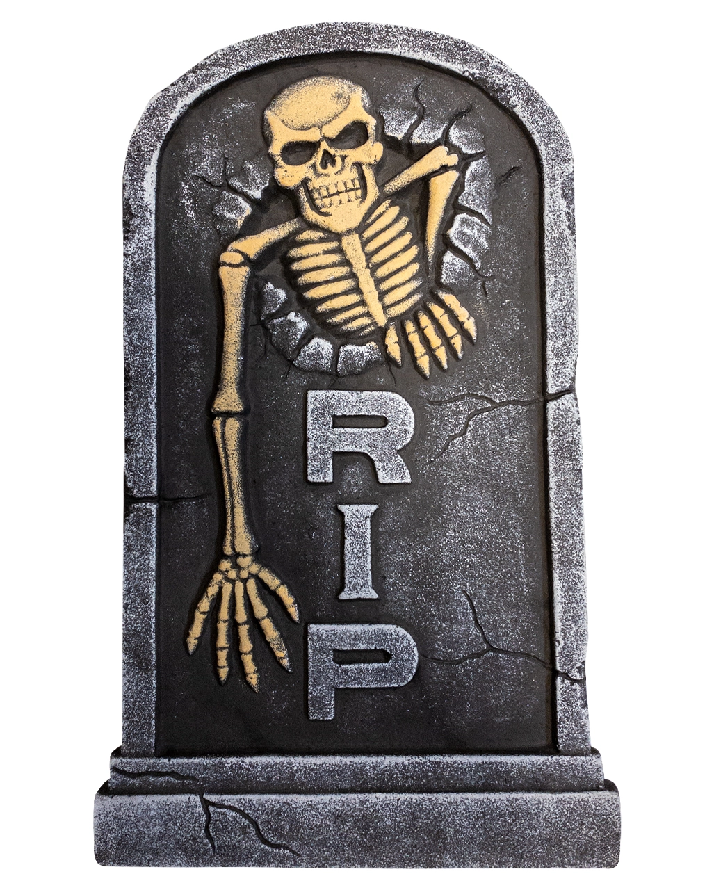 Der Heraus greifendes Skelett aus Grabstein 55cm ist ideal als Friedhofs Dekoration für Halloween. Zusammen mit Moos, Ästen & Totenköpfen kannst du mit dem Gedenkstein im Nu eine geniale Friedhofs-Szene in den Garten bauen.