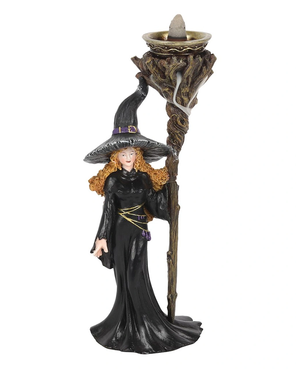 Hexe mit Magierstab Backflow Räucherkegelhalter