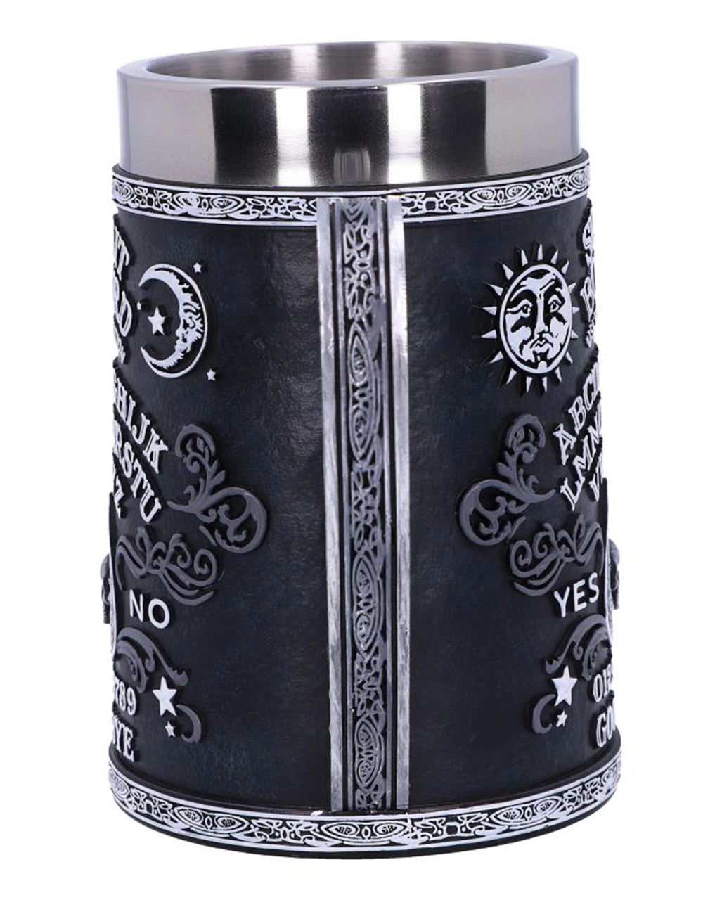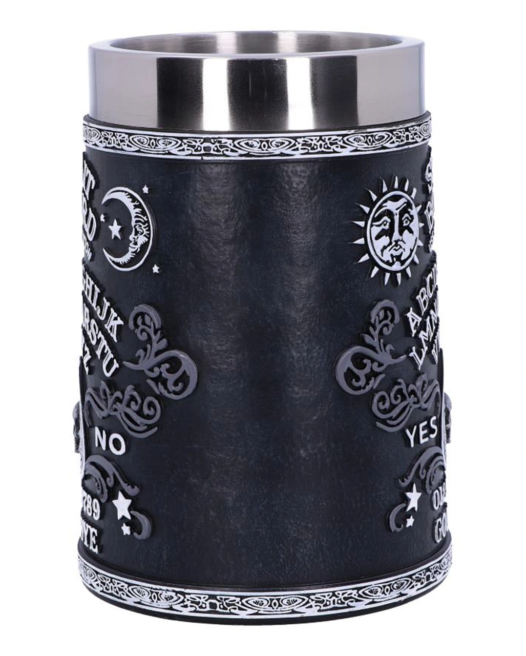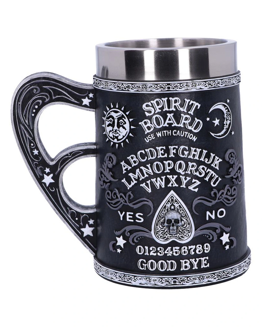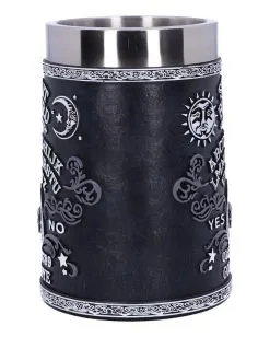 Spirit Boards sind für Hexen und Okkultisten seit langem eines der mächtigsten Werkzeuge, um Geister zu rufen. Der schwarze Ouija Board Bierkrug ist mit dem klassischen Spirit Board Design verziert und somit eine okkulte Tischdeko, die nicht nur Fans des Spirituellen begeistert.