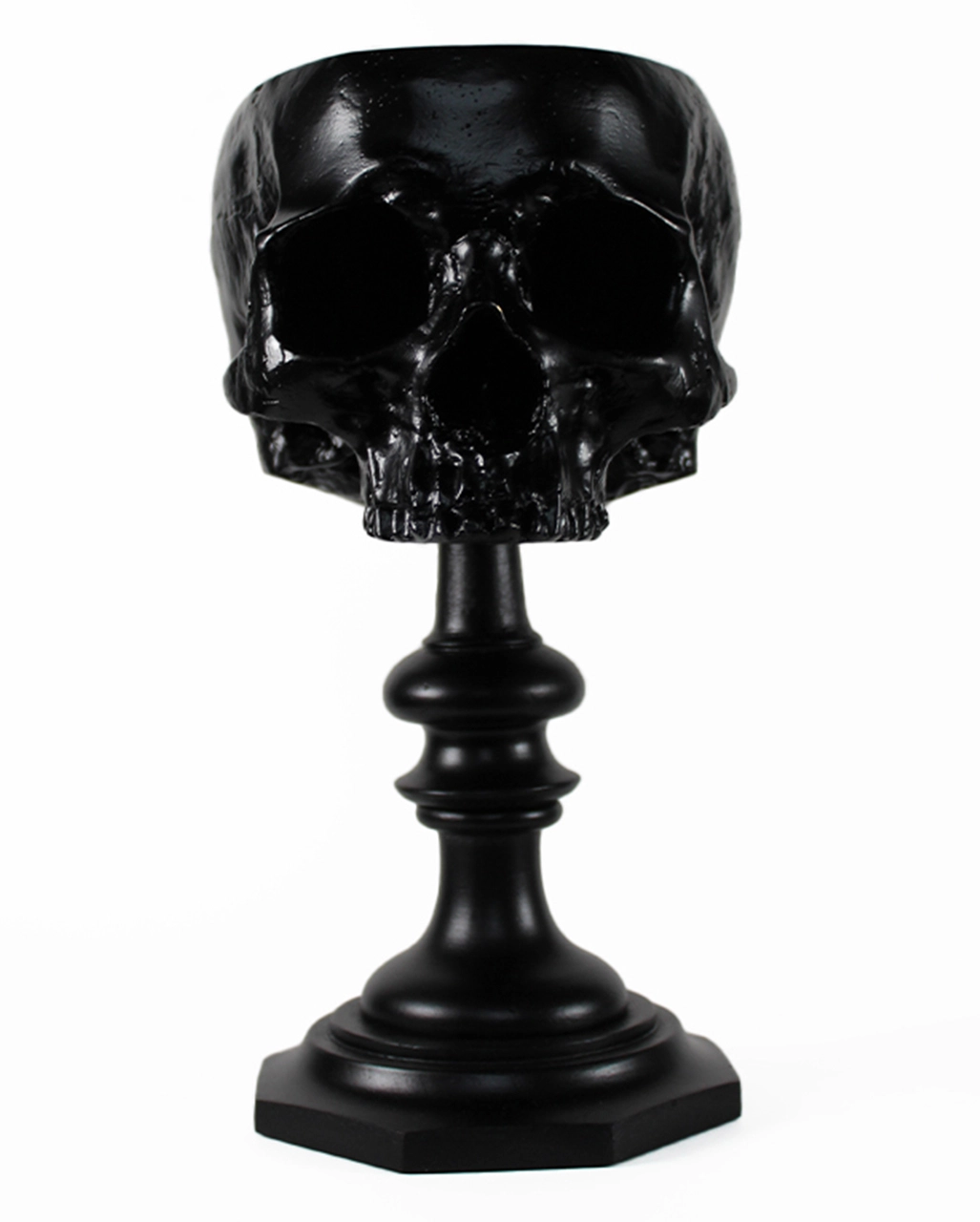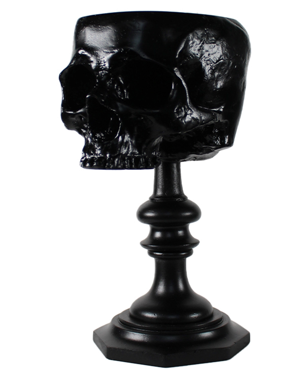 Lieferumfang: 1 x Schwarzer Totenschädel als Ringehalter 21cm