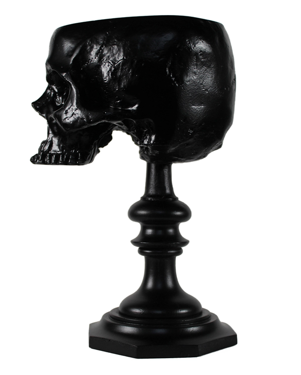 - Schwarzer Skull aus Gips auf Sockel aus Polyresin