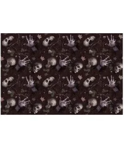 - Dunkle Tischdecke mit Totenköpfen, Leichenteilen, Ästen & Blättern